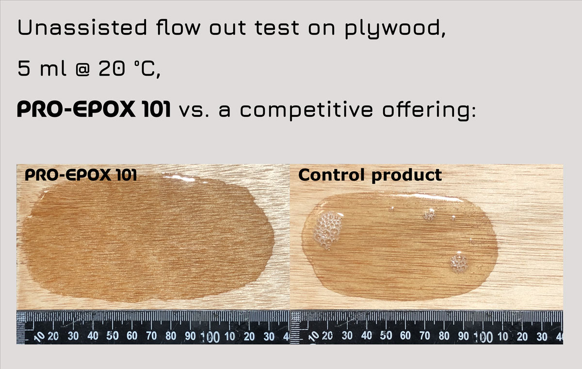 PRO-EPOX 101 is a higher viscosity resin, which is very useful when applying to vertical or inverted surfaces. Nevertheless, due to its lowered surface tension, it offers faster foam diffusion, substrate penetration and wetting of fibers and wood. It is suitable for interior and exterior use, above and below the waterline.